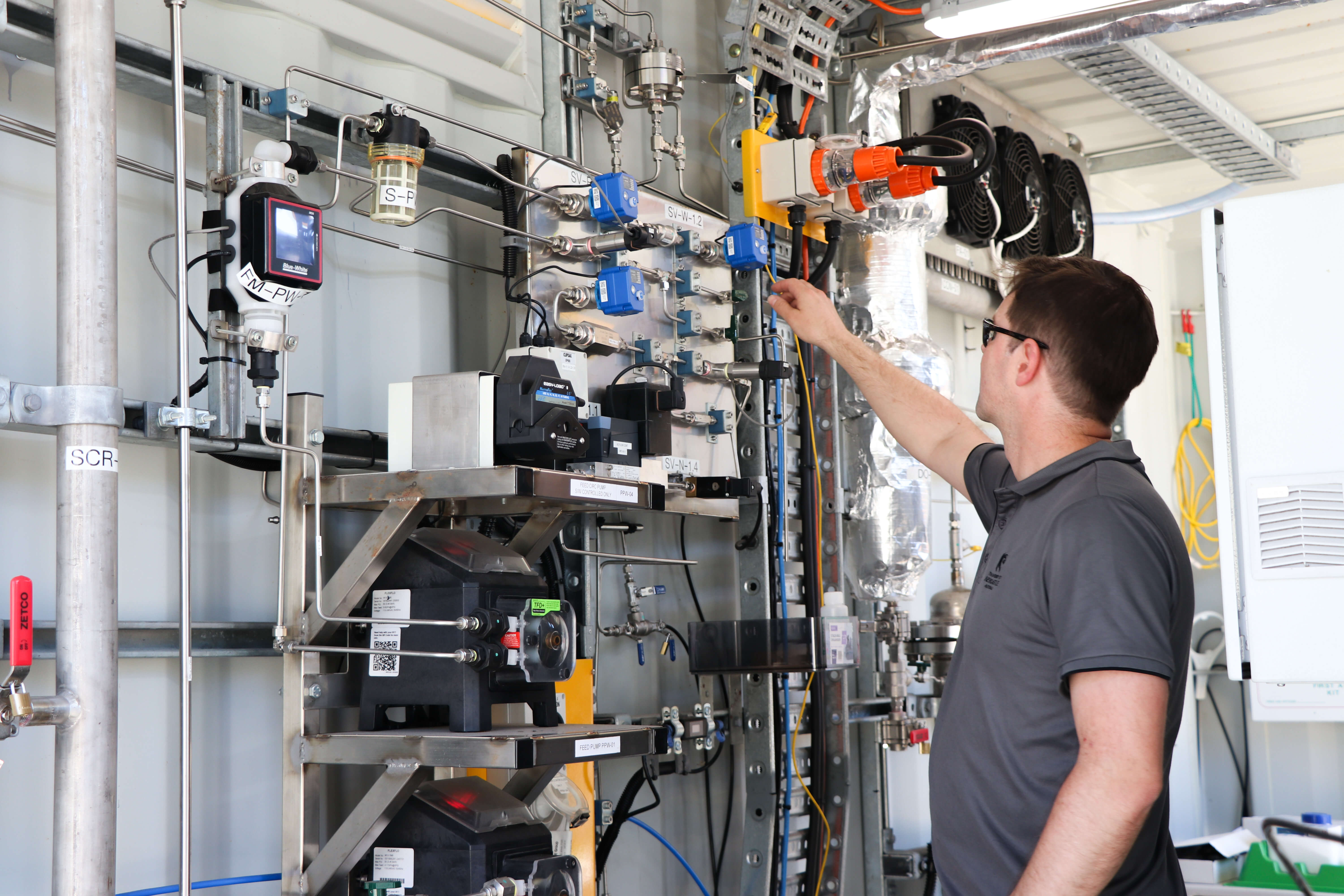 Dr James Dickinson working in the PFAS Harvester alpha prototype.